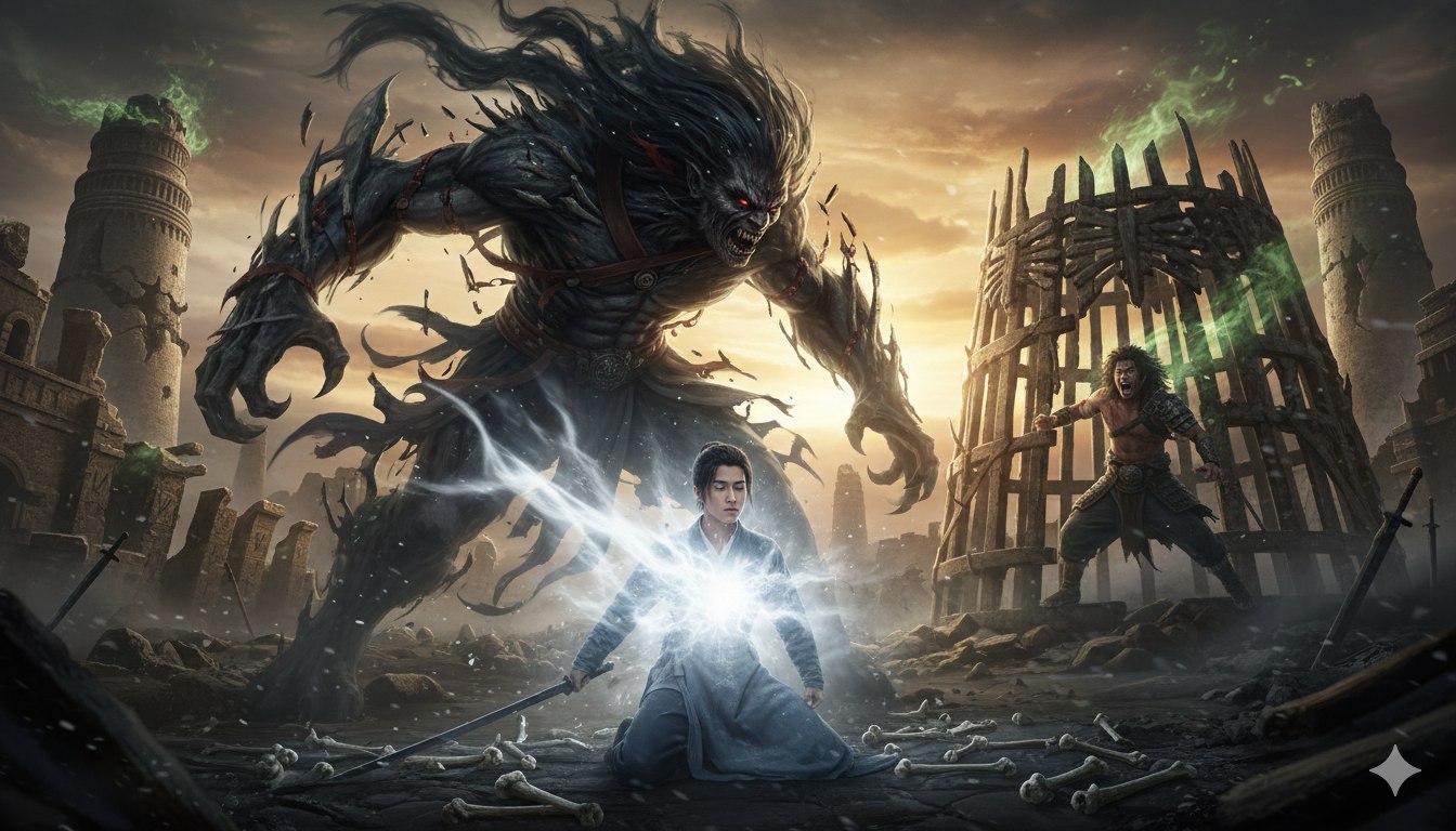 天地灵气早已枯竭如涸井,万法归寂,道统崩坠。曾盛极一时的修真世家,如今不过枯骨埋荒草;剑鸣九霄的剑道宗门,只剩断碑残瓦,在风沙中低语旧日荣光。世人称此为“残光纪”——因日月失辉,灵气如残烛将熄,仅存微光苟延于世。