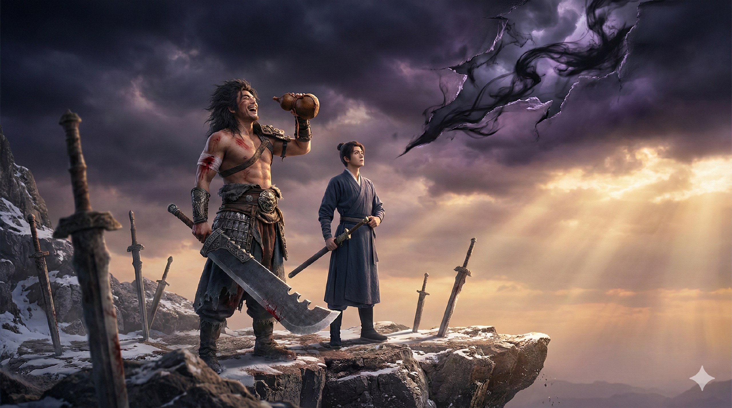 他盘腿坐下,拔开酒塞,先敬天地,再敬剑碑,最后自己灌了一大口。
