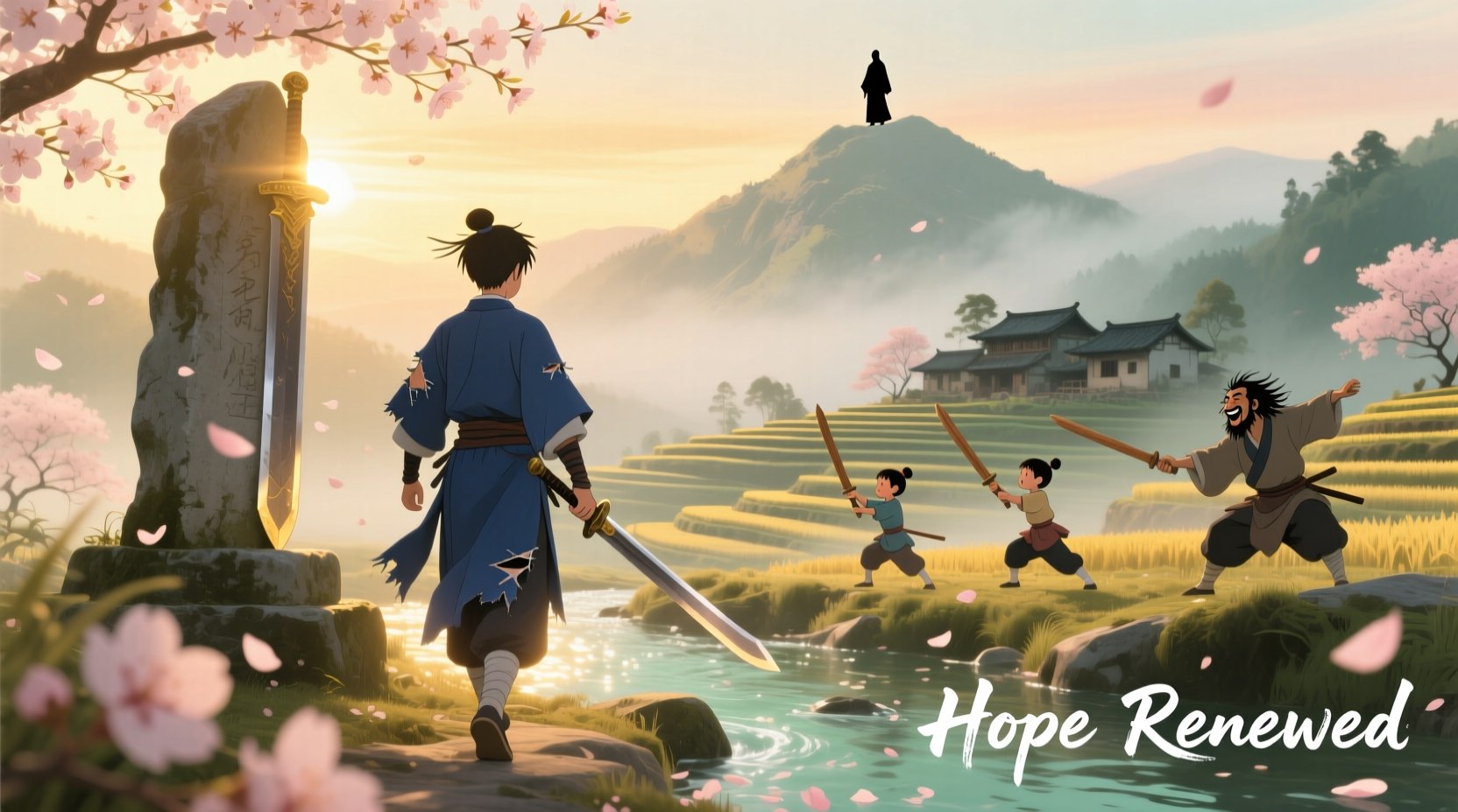 “你不必。”尧樊转身,目光温和,“你有自己的道。刀可劈世,亦可护民。北境流民建了‘焚罡村’,以你为名。他们等你去教孩子练刀,守一方平安。”