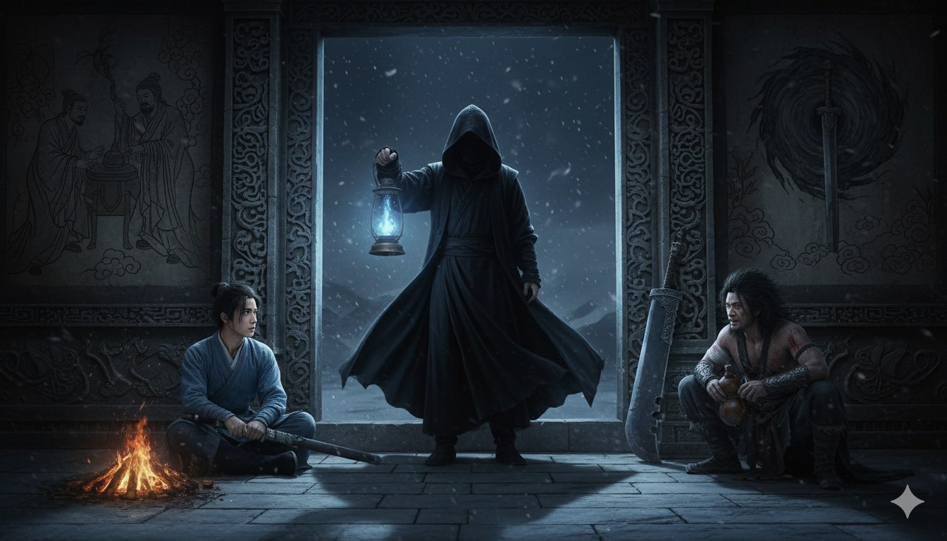 尧樊踏雪而来,青衫已换作灰布短袍,断渊剑横背于肩。他循着李氏兄弟留下的蛛丝马迹至此——那夜战后,李二袖中掉落一枚黑铁令,上刻“渊引”二字。此令材质非铁非玉,触之冰寒,内有微弱魔息流转。尧樊断定,李氏背后,必有操控者。